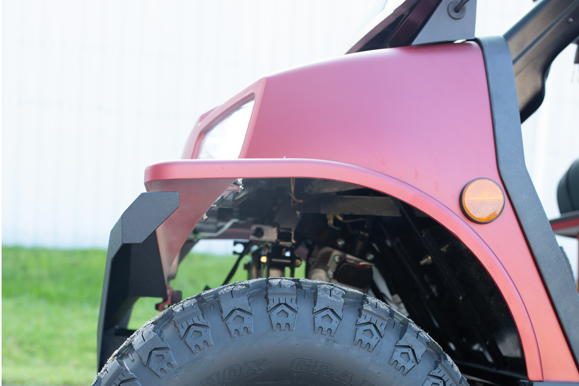 The E-Merge Shadowhawk delivers an attitude and look that was pioneered by the Ghosthawk. New features include a 3-inch lift combined with new tires delivering a softer ride, easier entry and exit, and a lower height for standard garages. Upgraded CoolTouch “Vette” seats improve comfort and reduce the sting of hot vinyl on sunny days. Complementing the package is our exclusive Bluetooth audio headliner and deluxe front bumper.