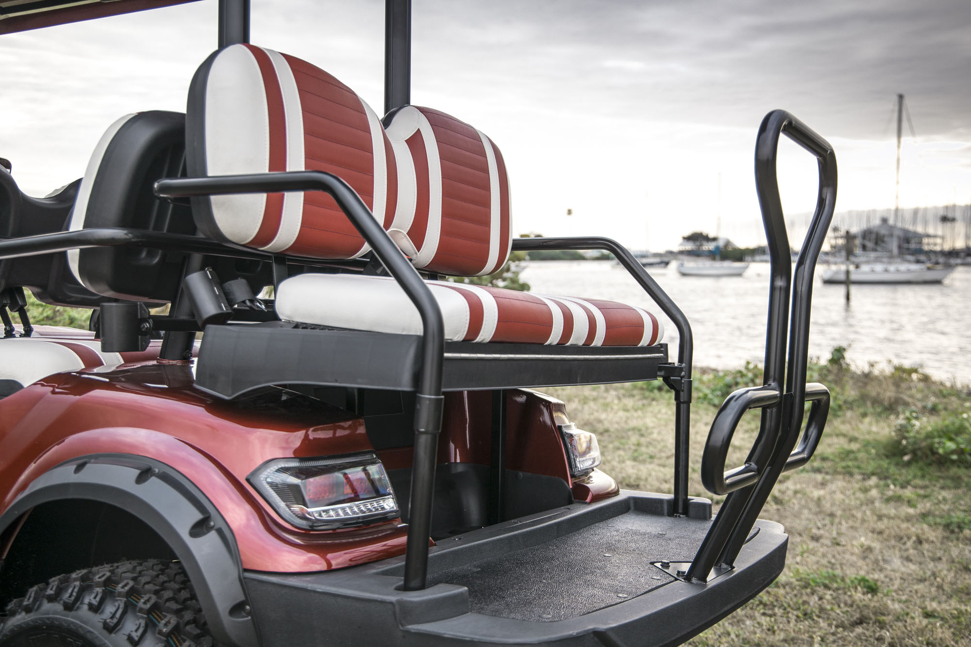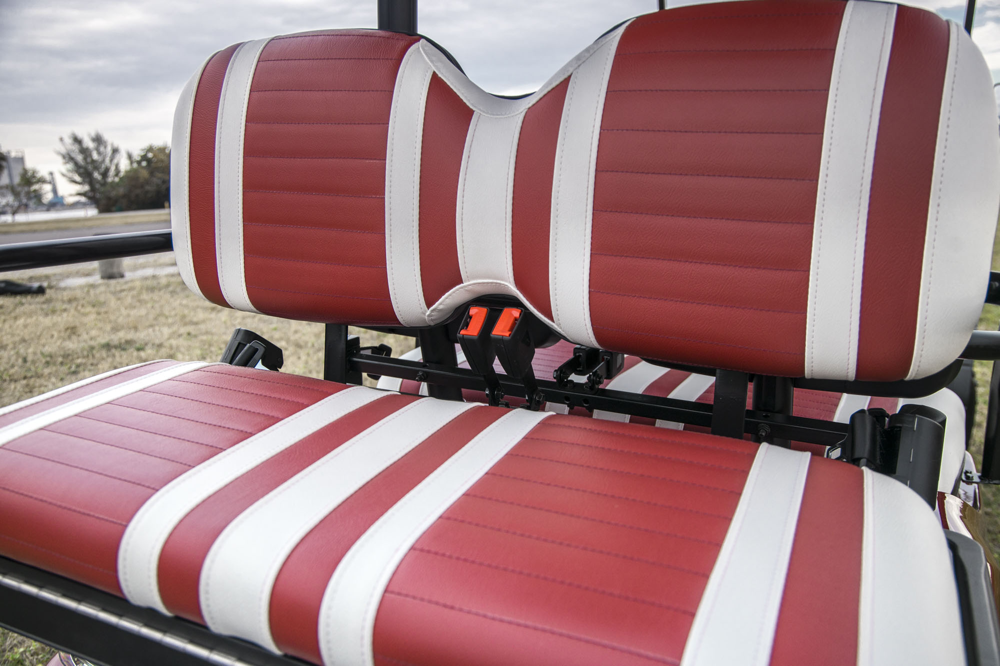 - Seats:Â Marine Grade Vinyl, Custom Stitched Panel, Single Color, Color Matched with White or Black Accents. Fold Flat Rear Seat for Hauling.