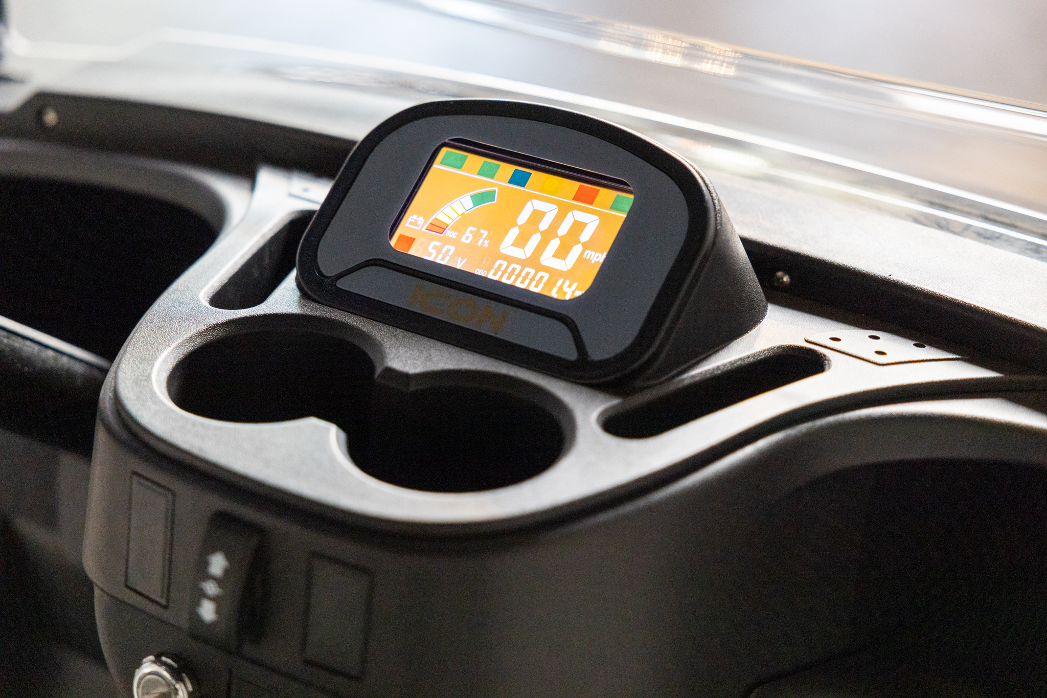 - Dash Components: Forward/Neutral/Reverse Switch, USB and 12V Plugs, Cubby Storage, Multiple Cup Holders, Key Switch, Instrumentation Cluster